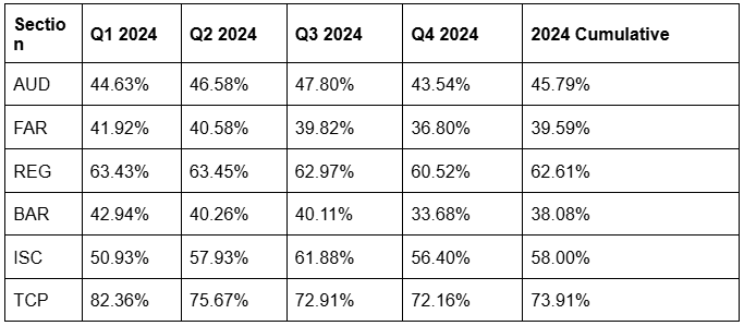 2024 CPA Exam Pass Rates (Official AICPA Data)